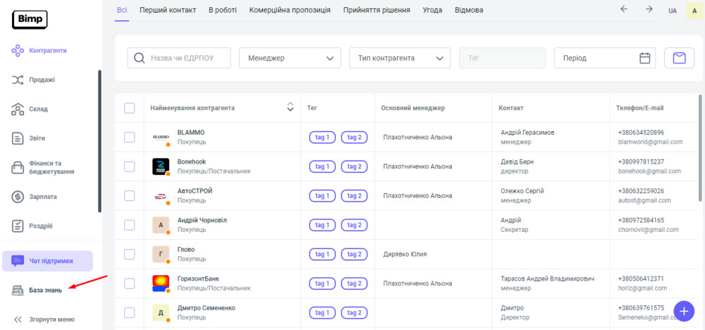 Відкрити статтю Бази знань: Імпорт Контрагентів компанії за допомогою шаблону Excel.