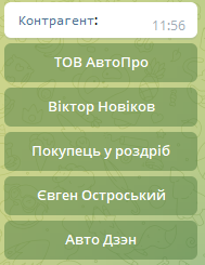3. Далі, з'являється список контрагентів (покупців), із якого ми маємо обрати того, котрому буде реалізовувати попередньо обрану позицію.