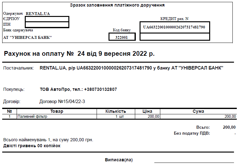 7. Також, даний рахунок ми можемо побачити на сервісі в блоці Продажі розділ Замовлення — рахунок, в переліку всіх замовлень компанії.