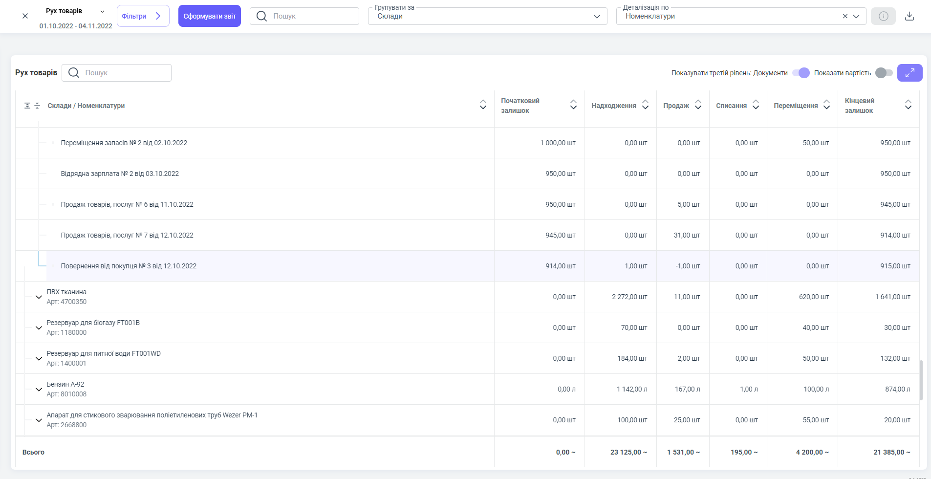А також, дані з документа потрапляють у звіт - Рух товарів.