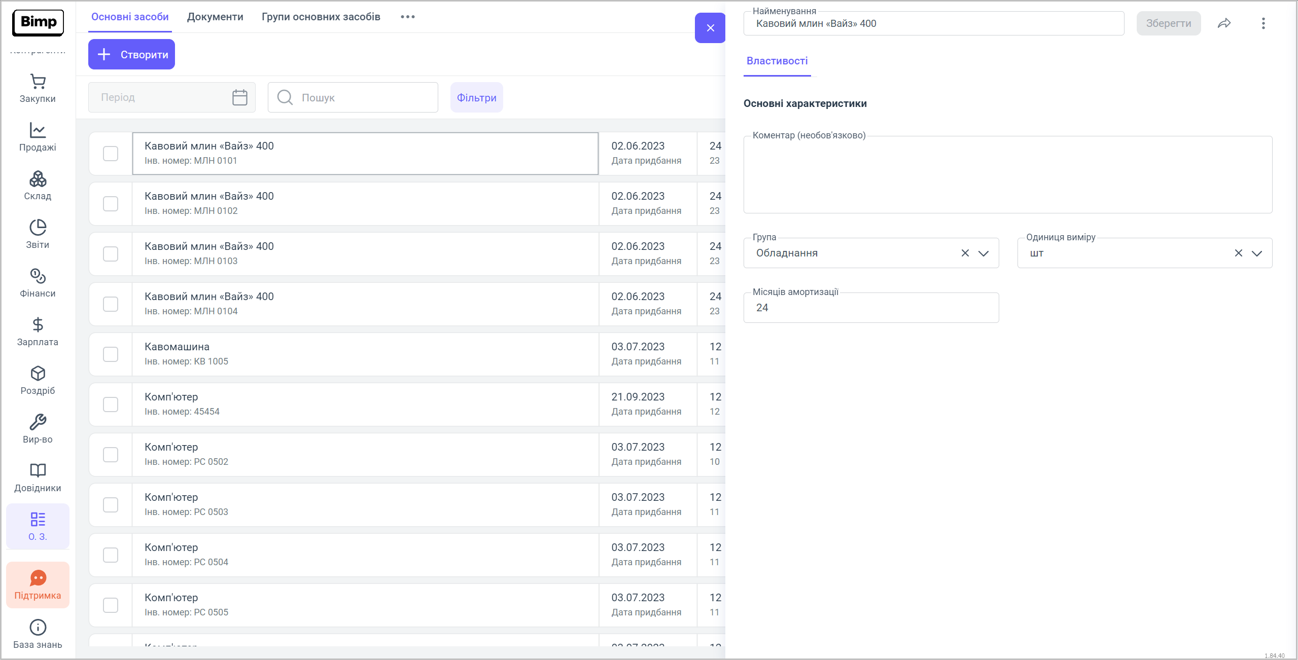 Після внесення всіх даних у картку основного засобу, натискаємо на кнопку "Зберегти".