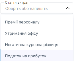 За допомогою даного документа ви зможете сплатити податок, обравши в рядку документа Стаття витрат — Податок на прибуток.