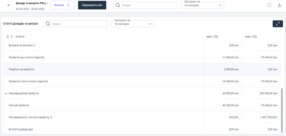 Після проведення оплати за статтею витрати — Податок на прибуток даним документом, у звіті ми можемо побачити суму проведену ним у рядку звіту — Податок на прибуток.