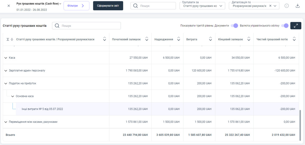 Інформація з документа потрапляє у звіт — Рух грошових коштів.