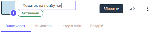 2. В картці вказуємо найменування послуги — Податок на прибуток.