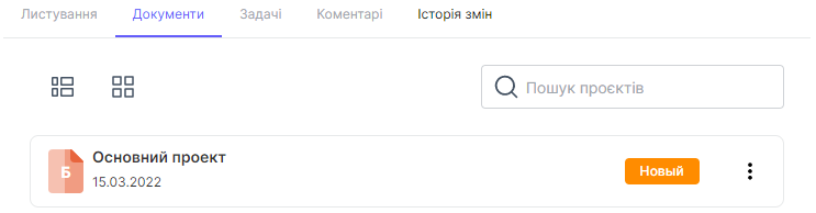 В картці Проєкту відкриваємо вкладку Реєстр документів.
