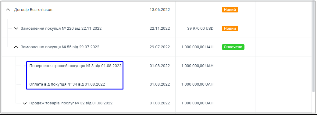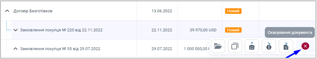 3. В списку проведених документів, знаходимо той, котрий потрібно скасувати.