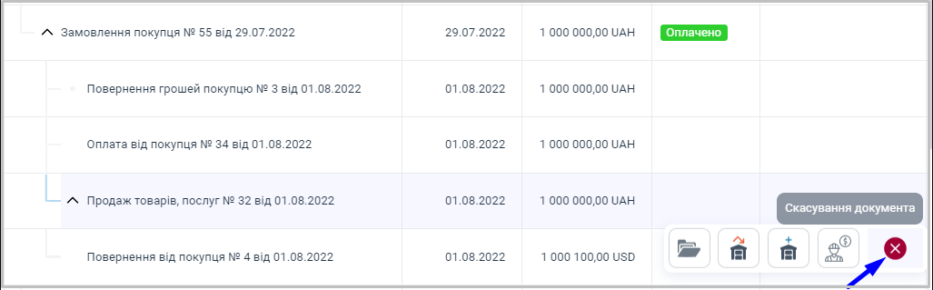 Для того, щоб провести скасування документів в інших блоках сервісу, необхідно: