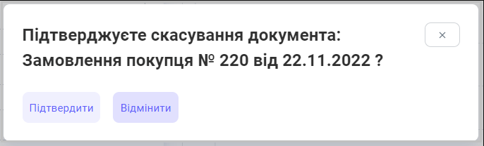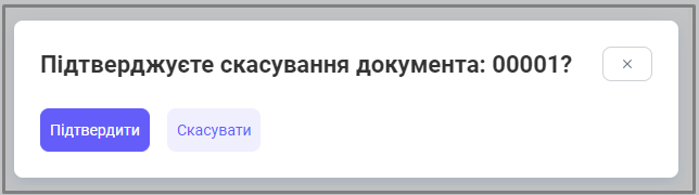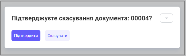 3. Після з'явиться інформаційне вікно в якому потрібно підтвердити або скасувати видалення документа.