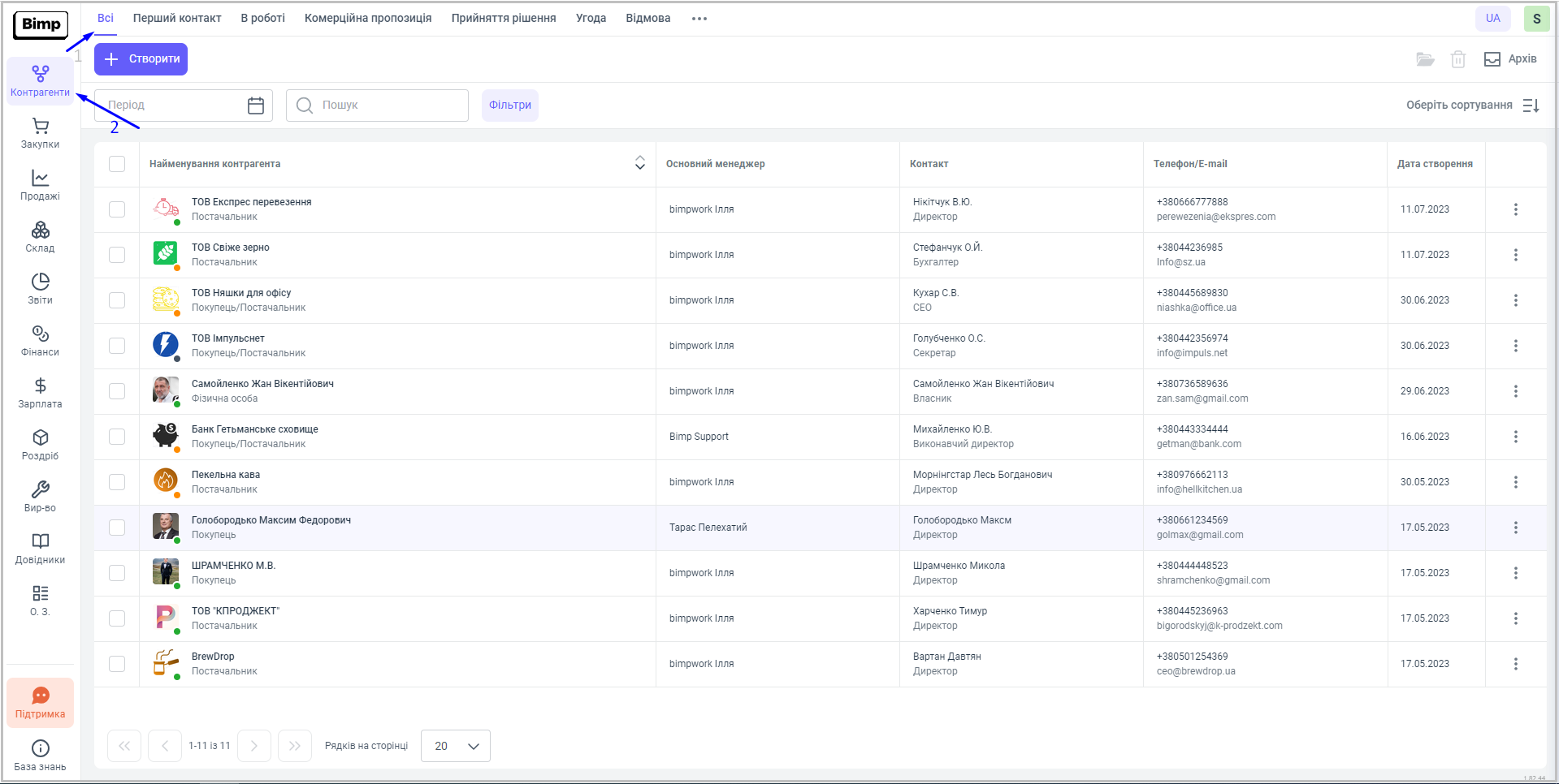 1. Переходимо в блок Контрагенти, розділ Все, обираємо необхідного контрагента.