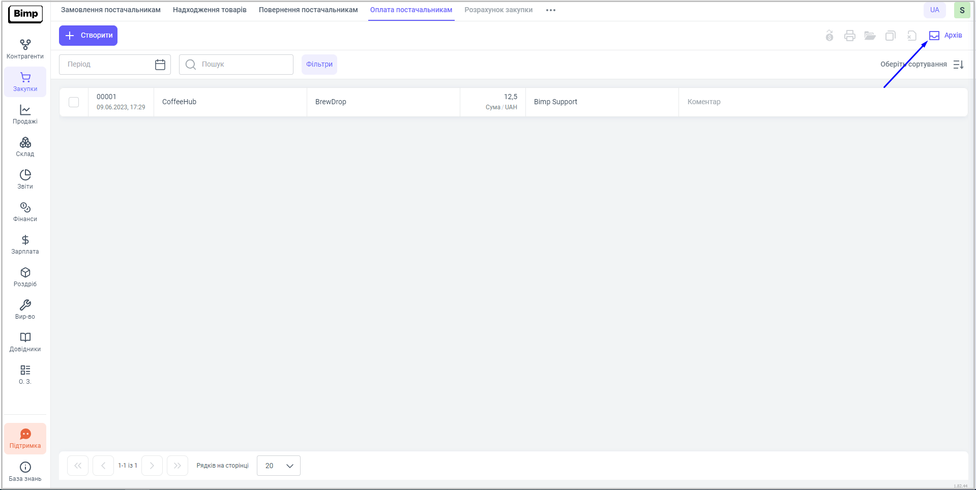Для того, щоб переглянути Скасовані документи, необхідно перейти в блок, по якому хочемо побачити скасовані документи та в правому верхньому куті натиснути на перемикач Показати архів. Після чого у нас відображатиметься все раніше Скасовані документи.