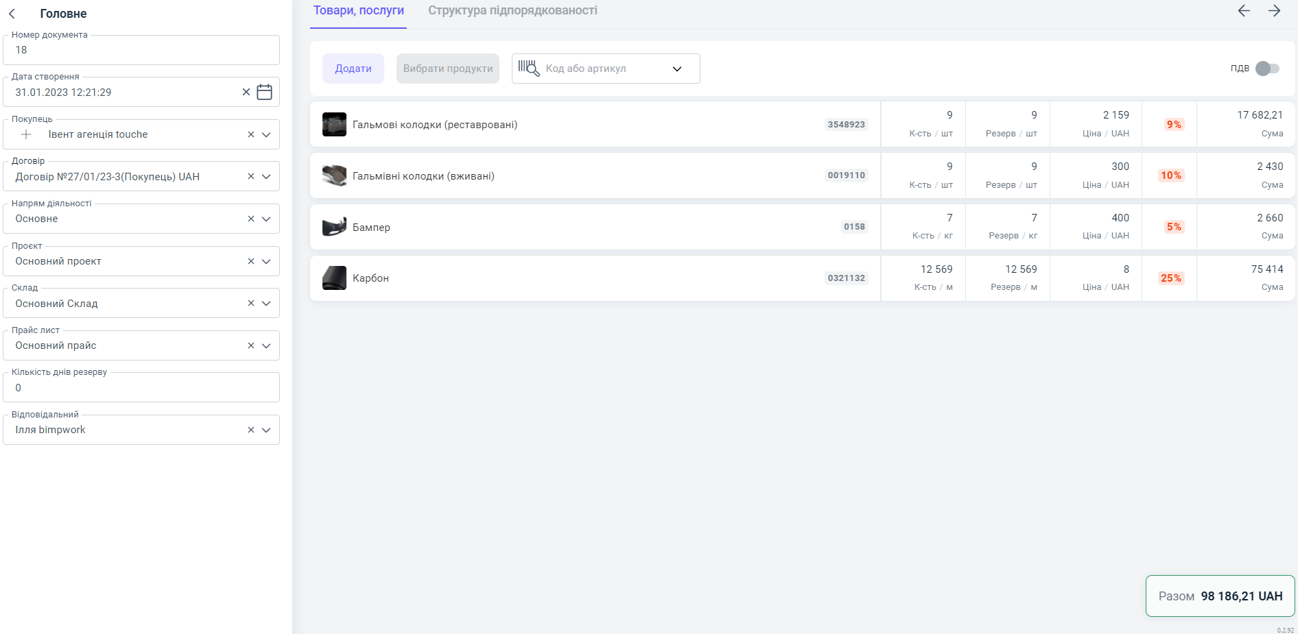 За підсумками створеного договору (створеного сервісом) проводимо документ Замовлення-рахунок покупцю.