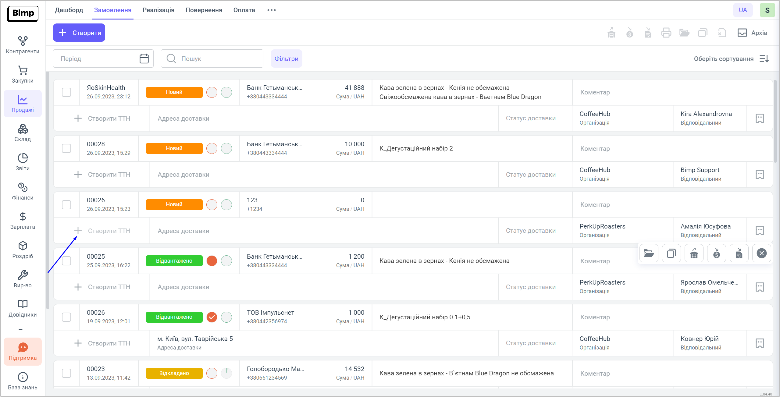 Як створити ТТН для Замовлення покупця, у сервісі Bimp?