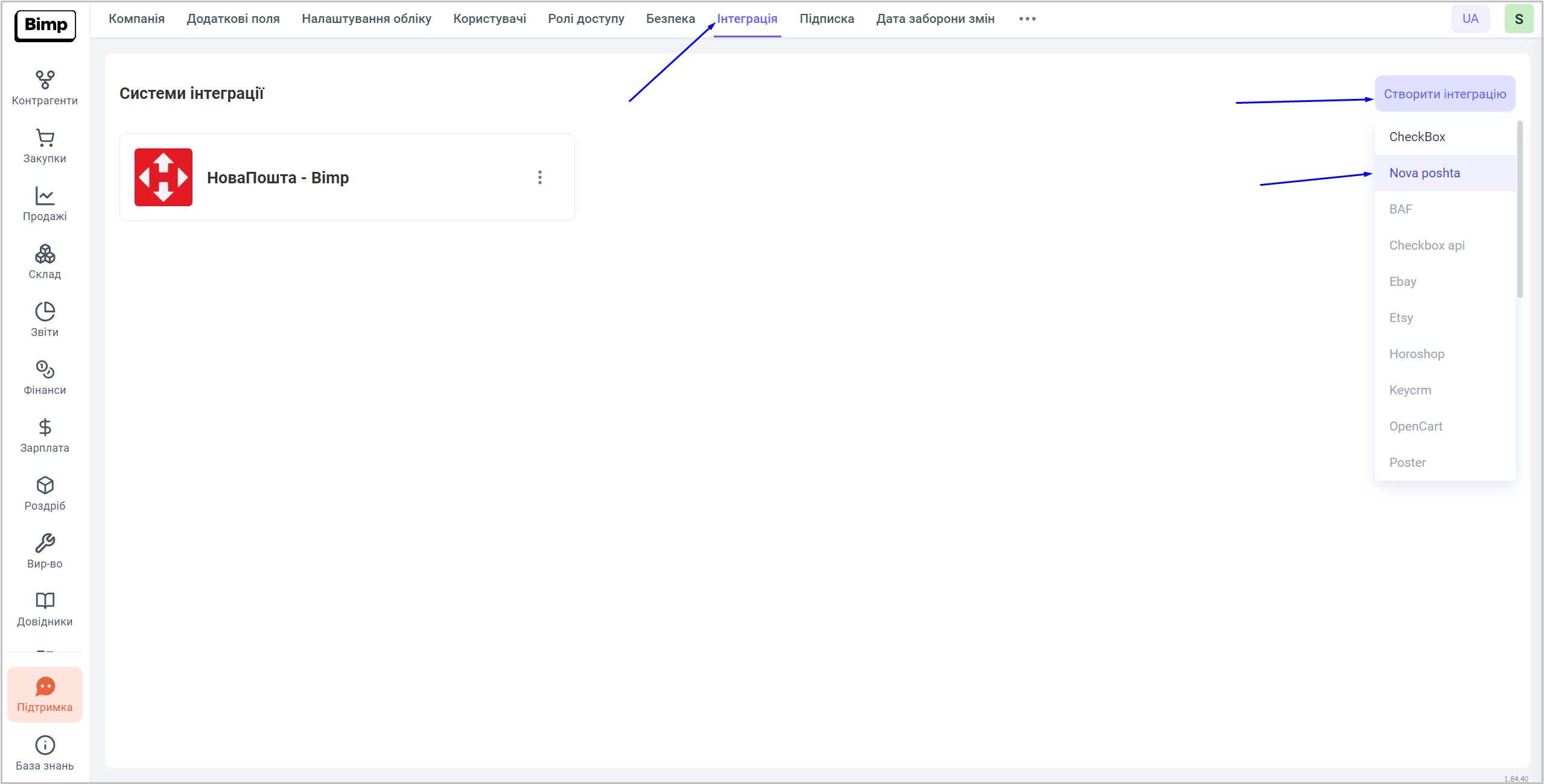 Як підключити інтеграцію з Новою Поштою, у сервісі Bimp?