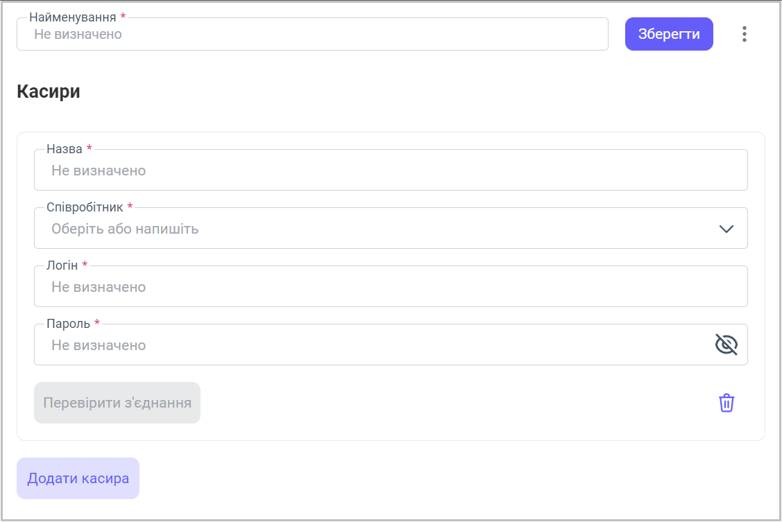 Рядок Назва - вкажіть ім'я касира або назву торгової точки.