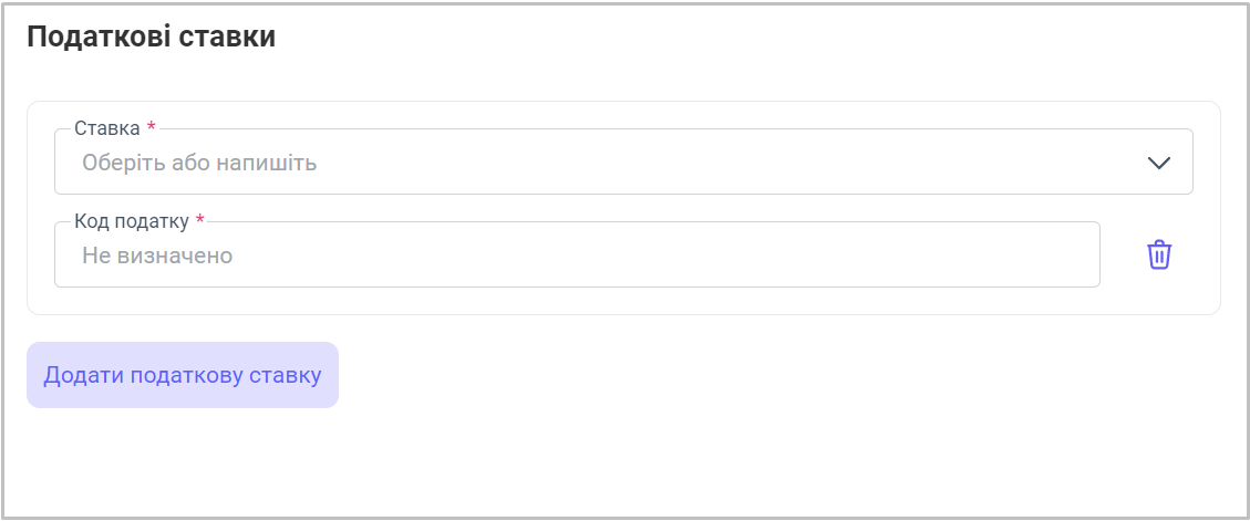 Натискаємо кнопку Додати податкову ставку та заповнюємо рядки.