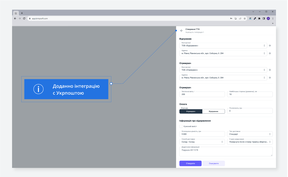 1. Створили інтеграцію с Укрпоштою.