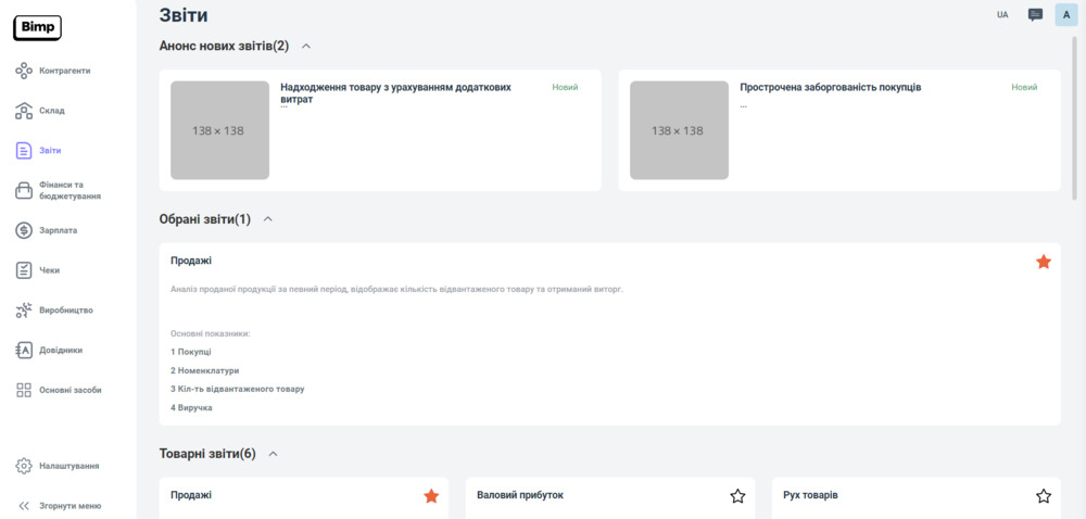 - Товарні звіти - відображаються звіти, які демонструють дані по продукції компанії;