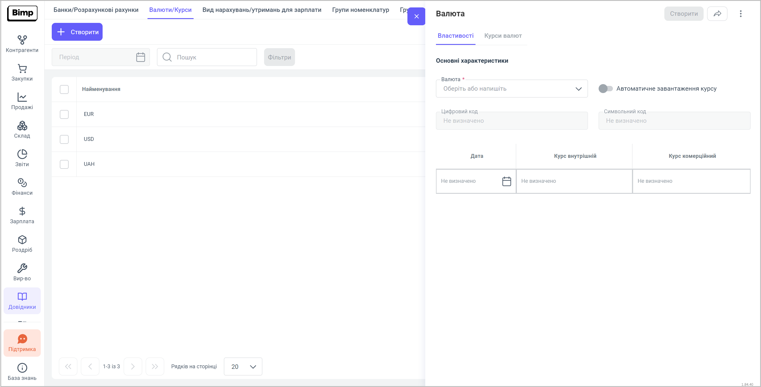 Довідник необхідний для відображення переліку валют, з якими працює ваша компанія, а також їх актуальних курсів.
