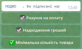 Натискаючи на пункт — Мінімальна кількість товара, він після активації матиме таку позначку