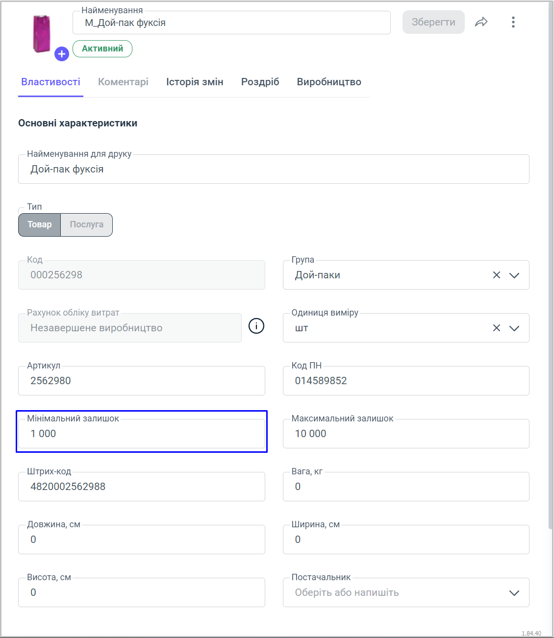 Інформація береться з картки номенклатур, яку клієнт заповнив у своїй компанії, з відповідного рядка — Мінімальний залишок.