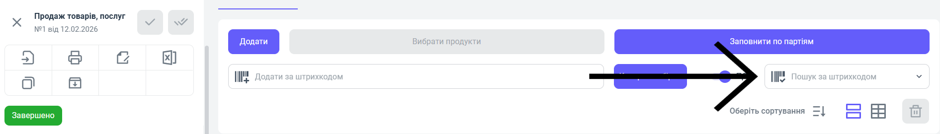 Зверніть увагу, чи дані вносяться саме у поле "Пошук за штрихкодом", а не в інше активне вікно, чи фільтр.