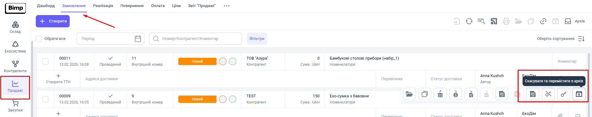 Шлях у системі: Оберіть потрібний модуль (наприклад, Продажі — Замовлення).