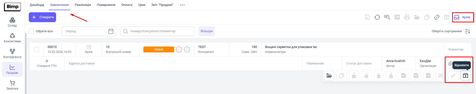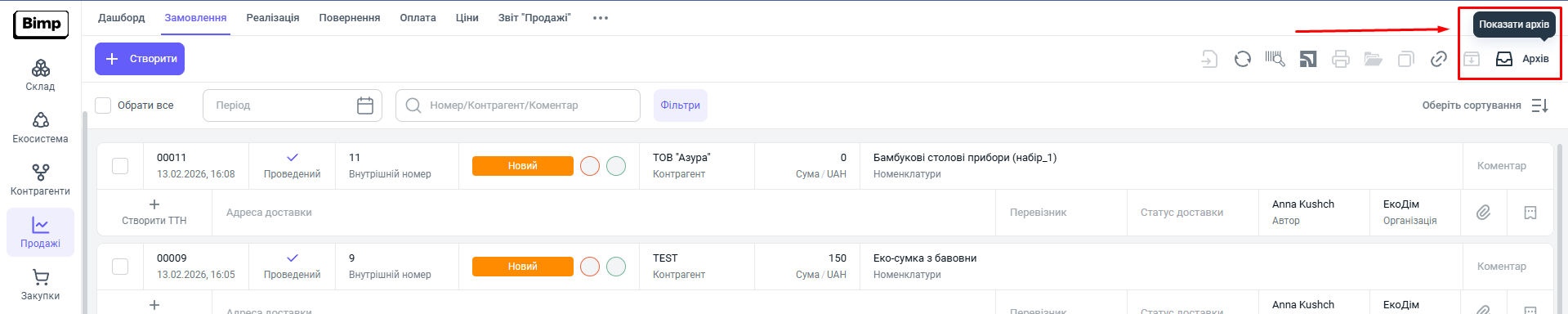 Де знайти заархівований документ? На сторінці списку документів у правому верхньому куті натисніть на іконку Архіву. Там ви зможете переглянути список або за необхідності натиснути кнопку «Відновити».