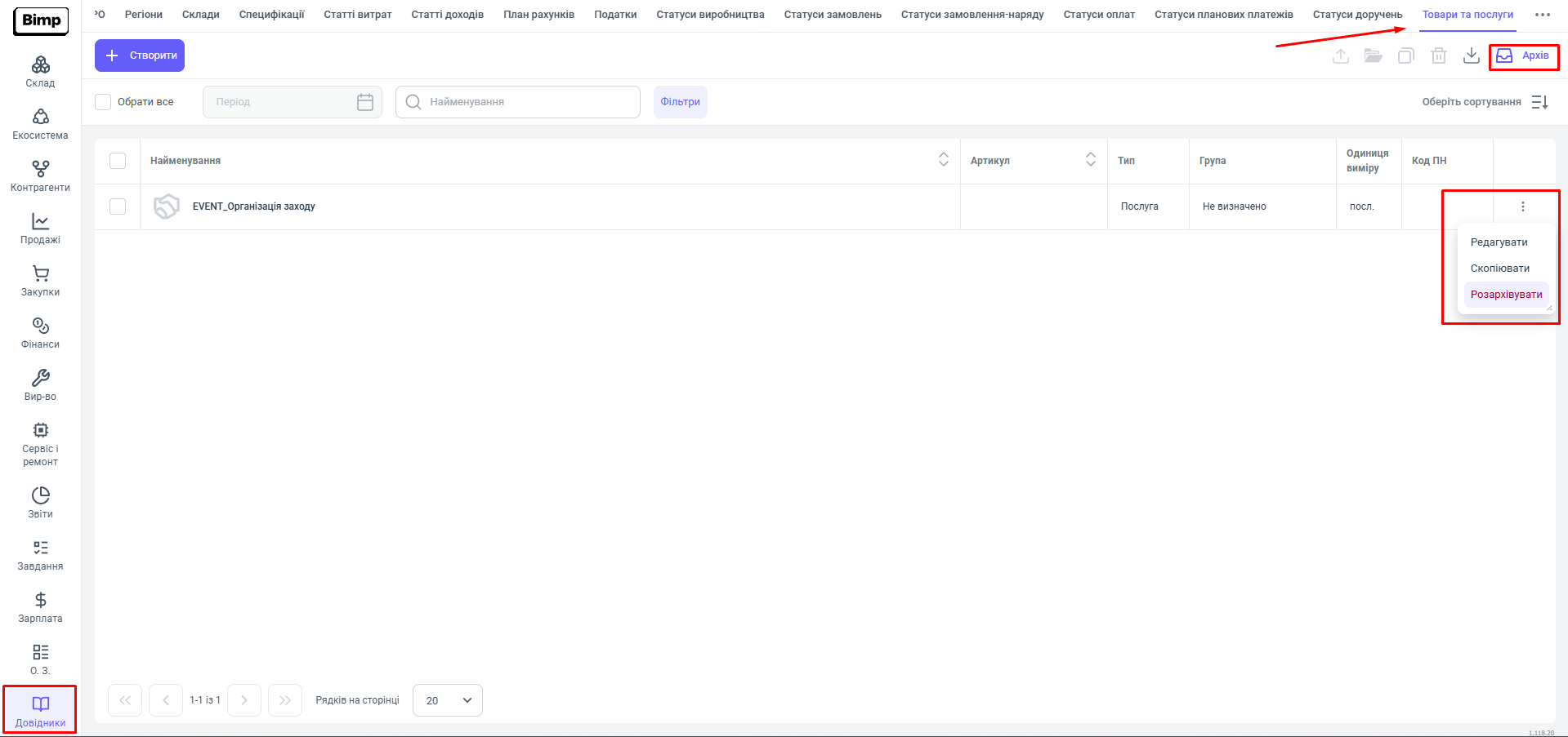 Де знайти архів довідника? Аналогічно до документів: натисніть на іконку Архіву у правому кутку сторінки відповідного довідника. Тут доступна функція відновлення.