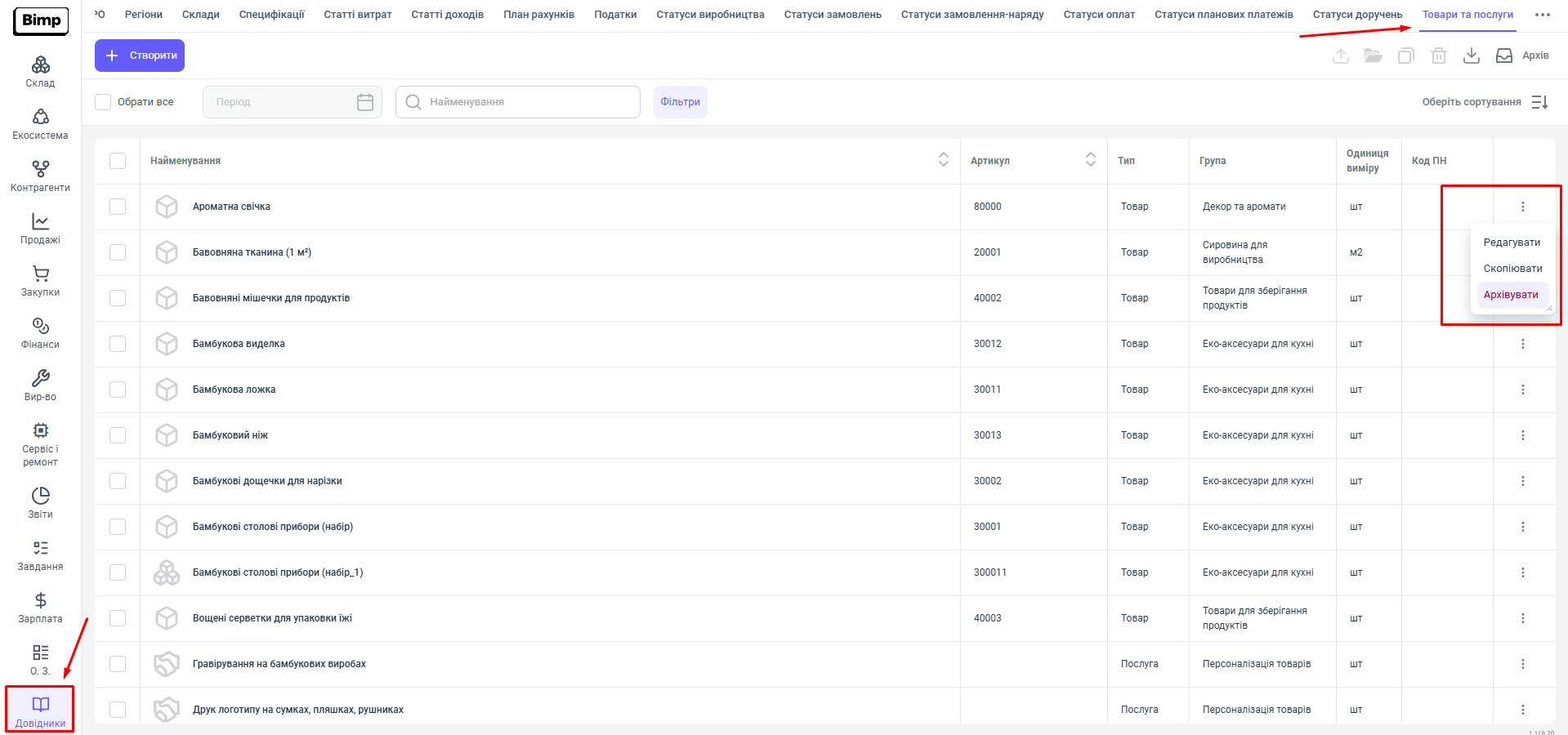 Архівування довідника робить його неактивним для вибору в нових операціях.