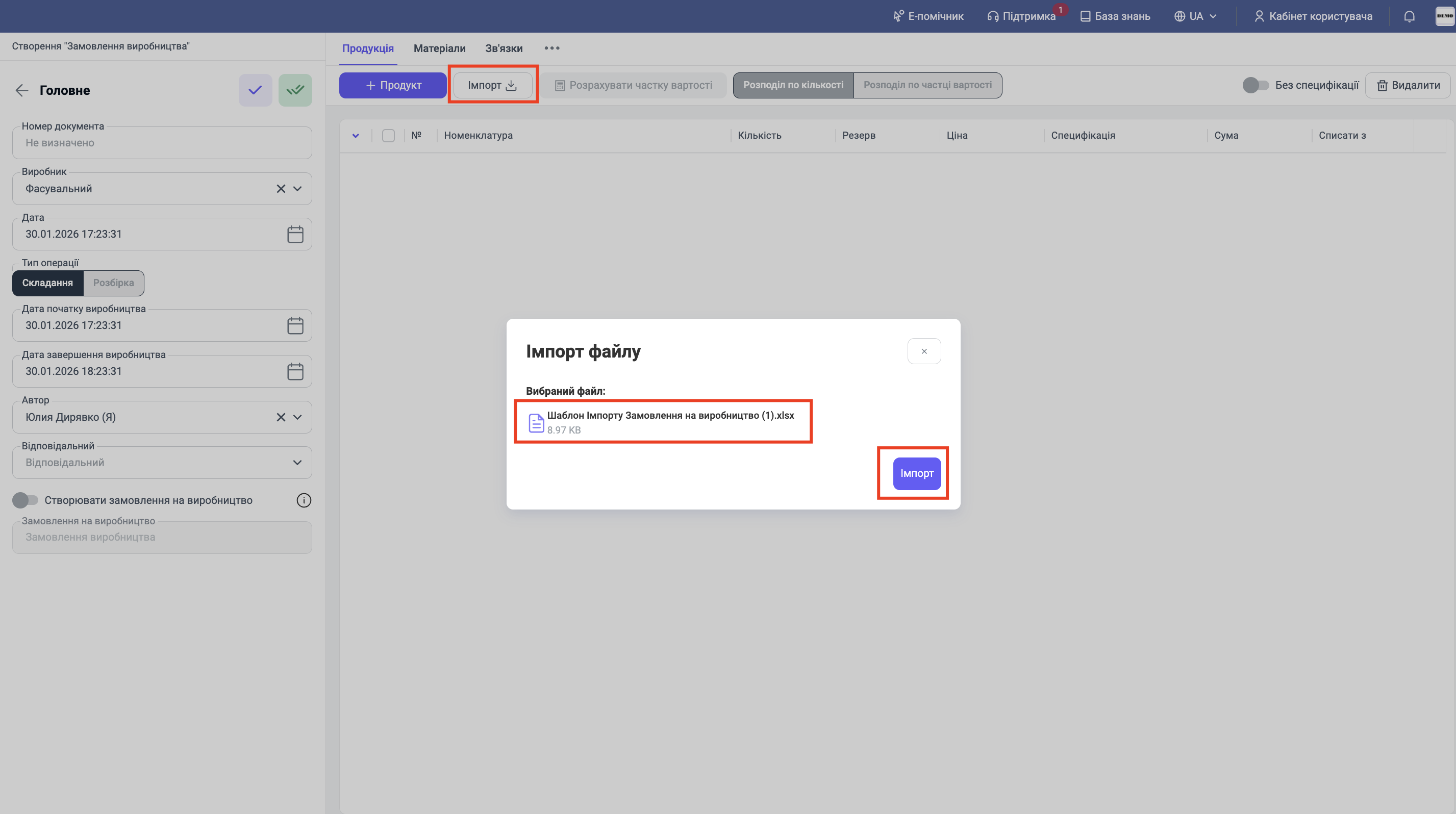 #виробництво #специфікація #імпорт #BIMP #інструкція #автоматизація #замовлення_на_виробництво