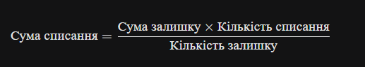 Для визначення вартості, за якою товар буде списано зі складу, використовується наступна формула: