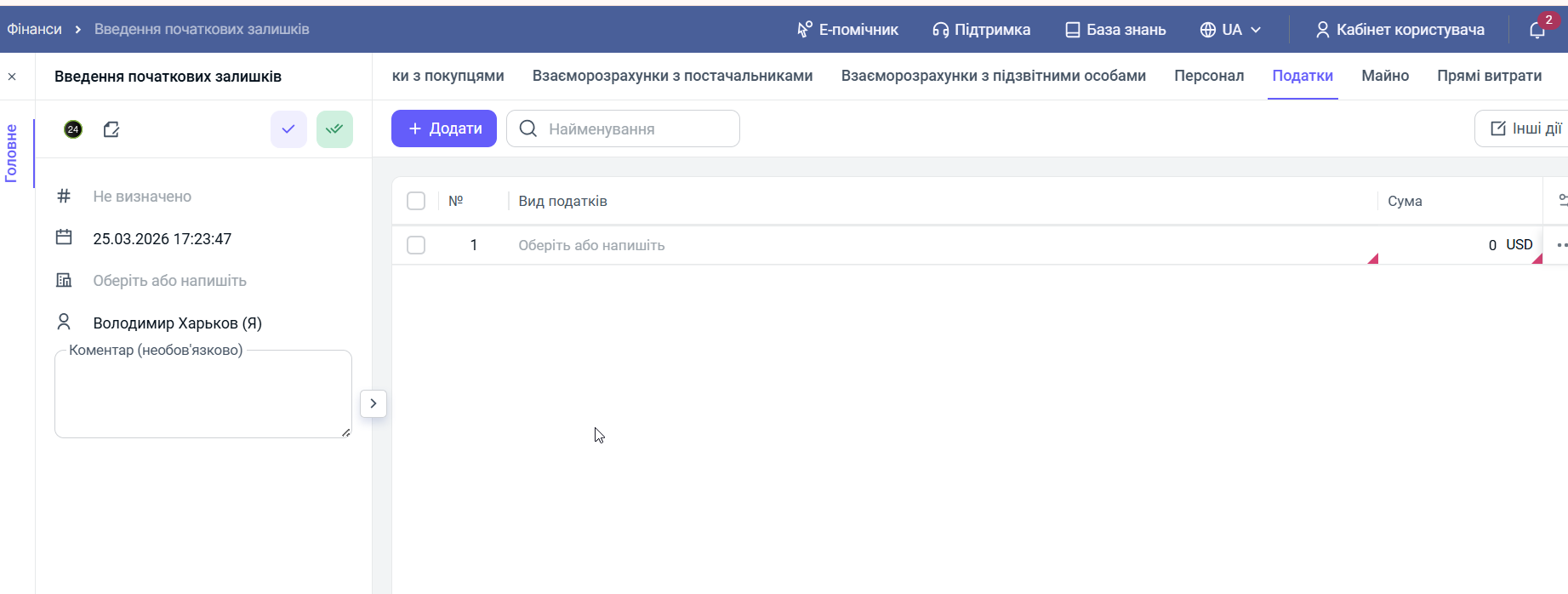 Зверніть увагу, що сума вноситься у валюті обліку, яка була налаштована для вашої компанії